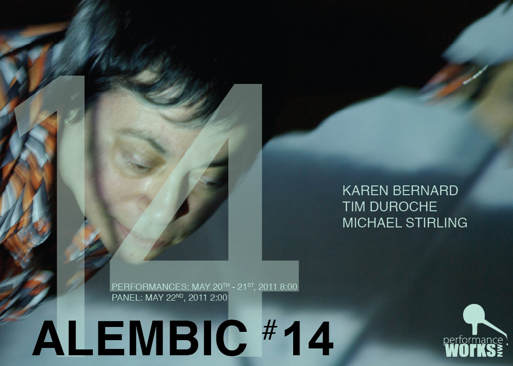 - Karen Bernard (NYC) performs her solo “Ouette”, using text, dance, and a roving laptop and projector in a transformative exploration of identity, mortality and desire