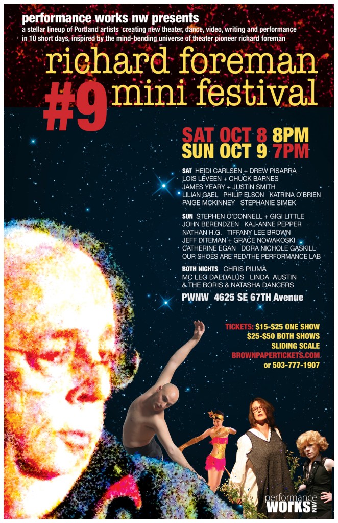 Boris & Natasha Dancers, Catherine Egan, Chris Piuma, Chuck Barnes, Dora Nichole Gaskill, Drew Pisarra, Gigi Little, Grace Nowakoski, Heidi Carlsen, James Yeary, Jeff Diteman, John Berendzen, Justin Smith, Kaj-anne Pepper, Katrina O’Brien, Lilian Gael, Linda Austin, Lois Leveen, Nathan H.D., Our Shoes Are Red/The Performance Lab, Paige McKinney, Philip Elson, Richard Foreman, Richard Foreman Mini-Festival, Stephanie Simek, Stephen O’Donnell, TIffany Lee Brown