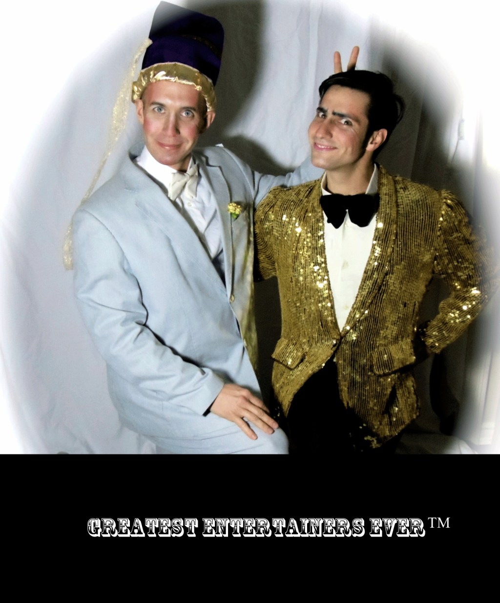 Who farted?? Was it God? Jay Leno? Europe? The Internet? Michael Jackson? The Aliens? Conceptual Art? Isis? A Joke? Barack Obama? Silence? Jar Jar Binks? The Human Body?.. Anyhow, prepare to suspend your disbelief for the Greatest Entertainers Ever! GEE is J and Jay, two twins born on the stage and destined for stardom of unfathomable proportions! While their history and sudden rise to fame remains a mystery, what is known is that these goons have seemingly mastered every last form of entertainment whatsoever. Opera? Magic? Dance? Slapstick? Mime? Ventriloquism? Psychic Readings? Sandwiches?! Is there nothing they don’t do?! Thank you!!!