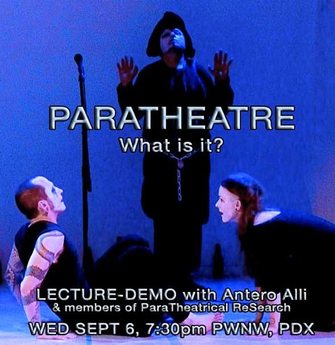 Paratheatre combines methods of physical theatre, dance, vocalization and meditation to access and express the internal landscape of the Body’s innate sources of impulse, emotion, power, and grace. In this public presentation, director Antero Alli discusses the basic methods of his Paratheatre medium while several members of ParaTheatrical ReSearch demonstrate them.