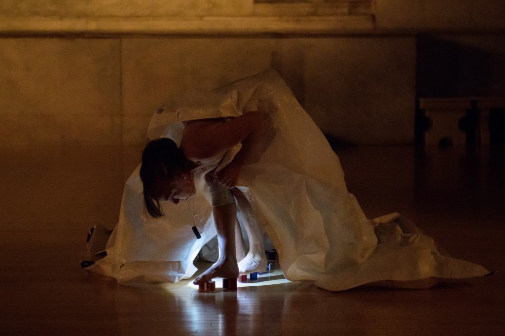 This work honors the particularities of my 65-year old body and its hunger for tactility, offering a sly provocation for audiences to experience the ephemeral materiality of their own bodies as well as the liveliness and glamour found in the ordinary. —Linda Austin
