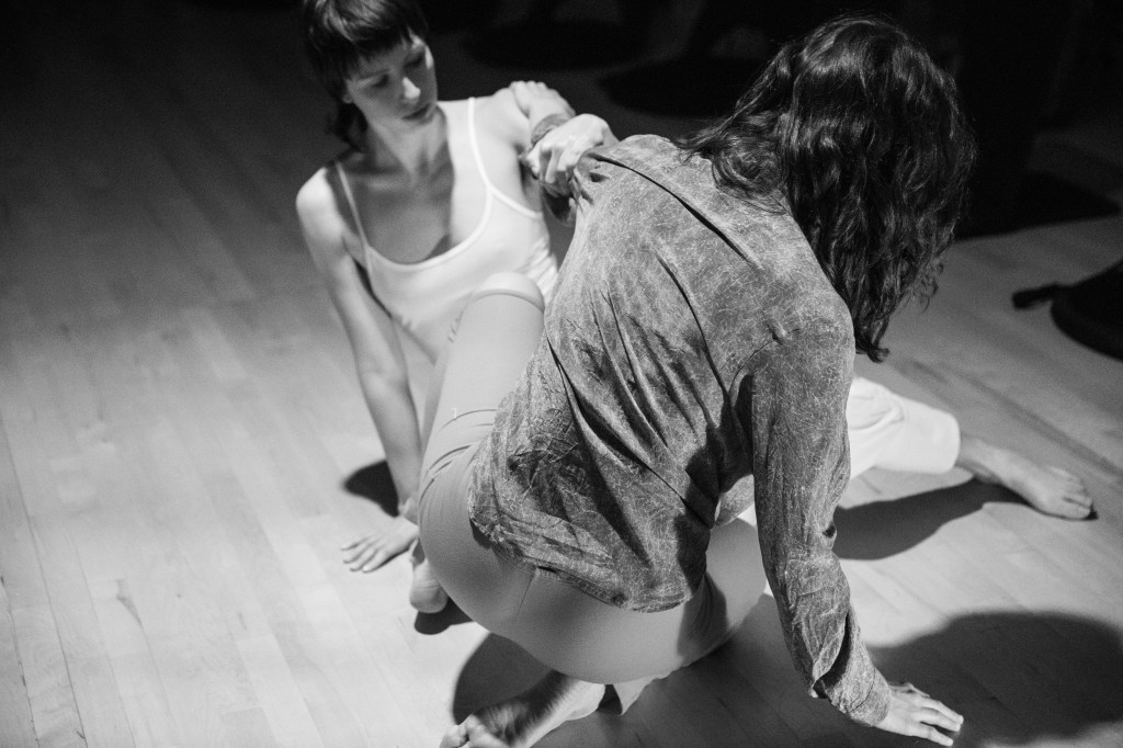 Emily Jones and Hannah Krafcik have been making performances and co-teaching together for the past three years. Their work emerges from a multiplicity of life practices including dance improvisation, forms of care labor, and a continued inquiry into power dynamics. With a critical lens toward their own intersecting and diverging femme identities and histories, Hannah and Emily are developing a queered ethics of making, performing, and co-teaching that is rooted in poetics and physical intimacy.