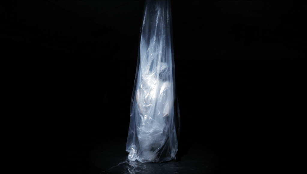 “A stunning hybrid of choreography, dramatic tension, and critical theory, Androids In the Tower begins as many things do: in a dark space of unsettling quiet. Save a sliver of light originating from the ceiling, one is forced to adjust to this redacted reality, where the edges of visual understanding are obscured and made unavailable. Only upon acquiescence to this new absence can one reconcile the amorphous figure encased within a slightly translucent plastic cylinder in the center. What follows is a slow-burning dance of languid, muffled, and purposeful movement. The figure increasingly begins to take shape; to define itself as an entity struggling within its synthetic skin. Its movements come in rolling waves, growing louder and more pronounced, with a stifled but ever-growing urgency.