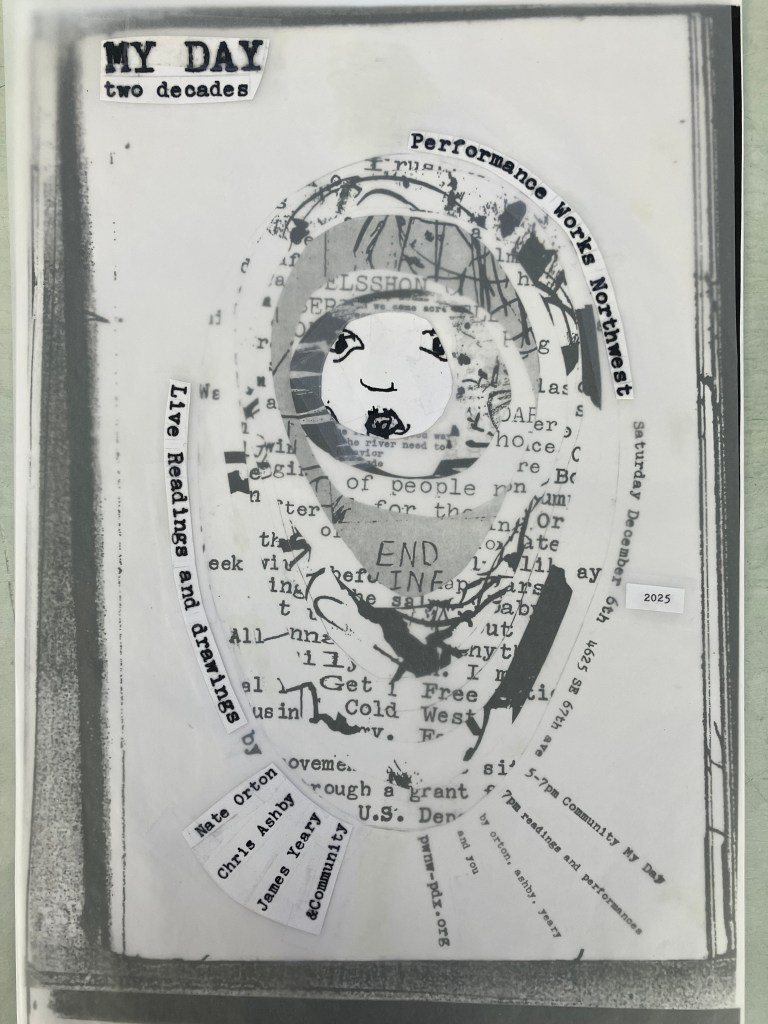 Please join us in celebration of the 20th anniversary of the ongoing MY DAY chapbook series—drawings and writing created in response to long walks—each over the course of one day—around the Portland area.