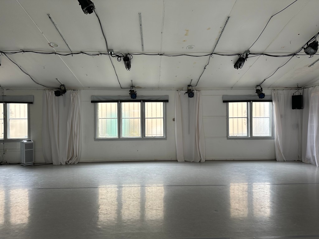 Uses: movement, contemporary dance, theater rehearsals, meetings, workshops, short-term class series (e.g. a 6-week series). Certain types of music rehearsals also work here. Not suitable for percussive dance styles: clogging, tap, flamenco, etc, as these mark and/or damage the floor.